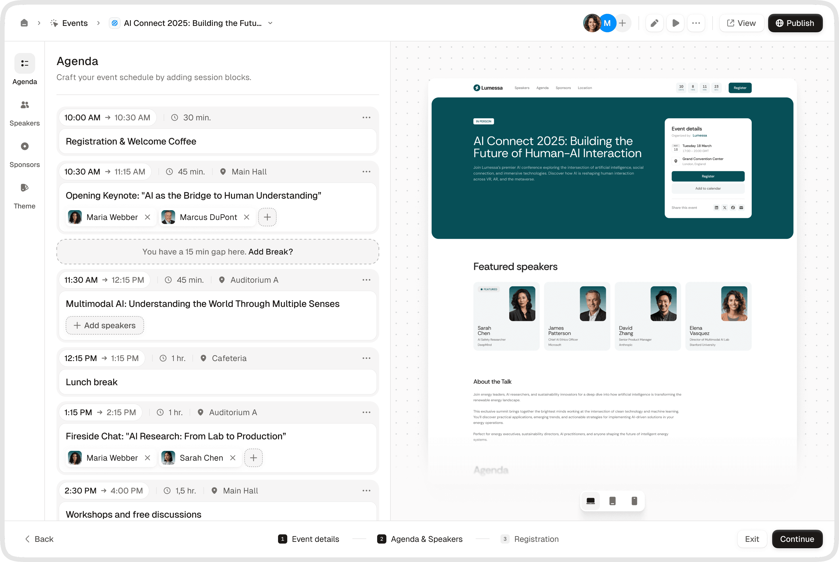 Create multi-session agendas quickly with an intuitive, step-by-step flow that keeps everything organized.